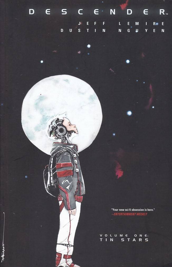Descender - Volume 1 (TPB) Gibi importado publicado pela Editora Image Comics, 136 páginas aproximadamente, data de publicação: 9/2015, formato: 17.0 x 26.0 cm, cor: colorido, origem: Estados Unidos, idioma da publicação: Inglês, Trata-se de um gibi usado