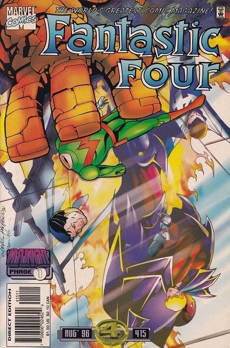 Fantastic Four - Volume 1 # 415 Gibi importado publicado pela Editora Marvel Comics, 36 páginas aproximadamente, data de publicação: 8/1996, formato: 17.0 x 26.0 cm, cor: colorido, origem: Estados Unidos, idioma da publicação: Inglês