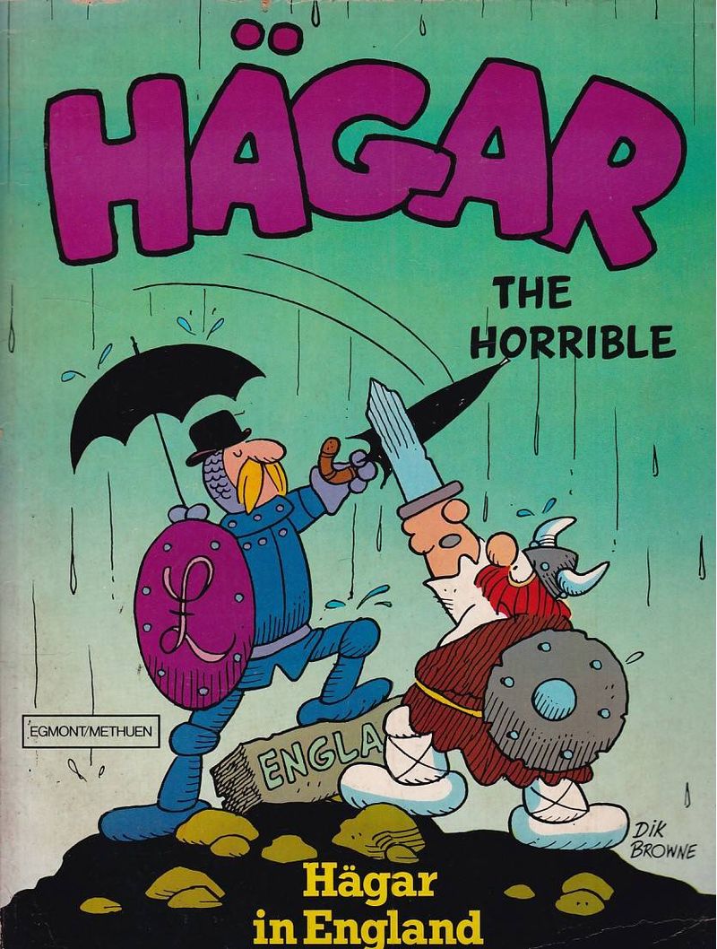 Hagar in England (TPB) Gibi importado publicado pela Editora Methuen Publishing, 56 páginas aproximadamente, data de publicação: 6/1978, formato: 22.0 x 29.0 cm, cor: colorido, origem: Estados Unidos, idioma da publicação: Inglês, Comic Book Esgotado Usado
