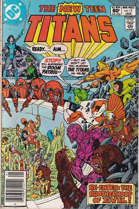 New Teen Titans - Volume 1 # 15 Gibi importado publicado pela Editora DC Comics, 36 páginas aproximadamente, data de publicação: 1/1982, formato: 17.0 x 26.0 cm, cor: colorido, origem: Estados Unidos, idioma da publicação: Inglês, Trata-se de um gibi usado