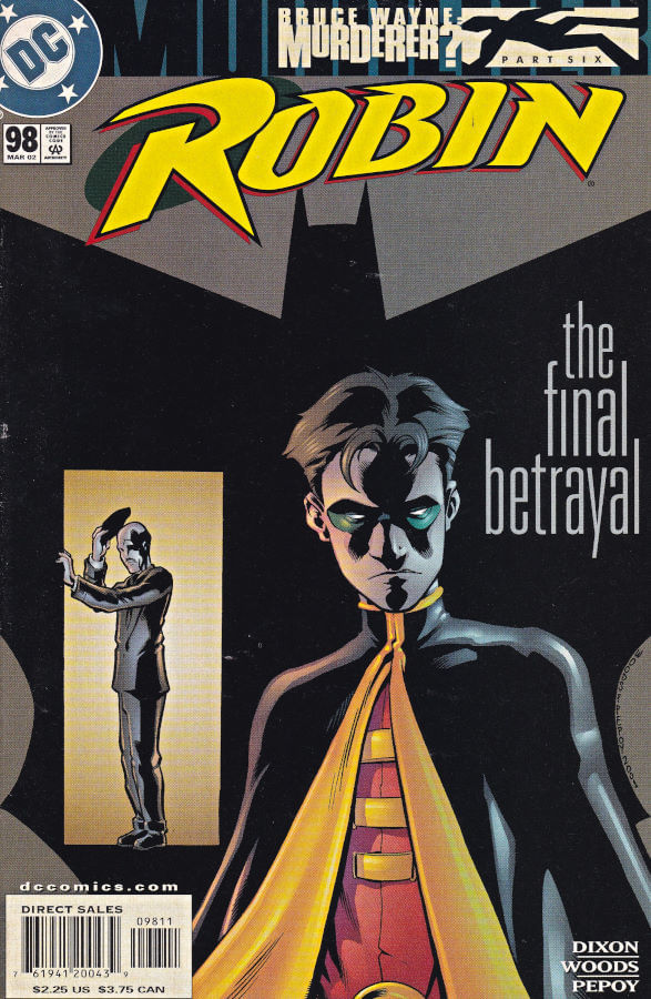 Robin # 98 Gibi importado publicado pela Editora DC Comics, 36 páginas aproximadamente, data de publicação: 3/2002, formato: 17.0 x 26.0 cm, cor: colorido, origem: Estados Unidos, idioma da publicação: Inglês, Trata-se de um gibi usado