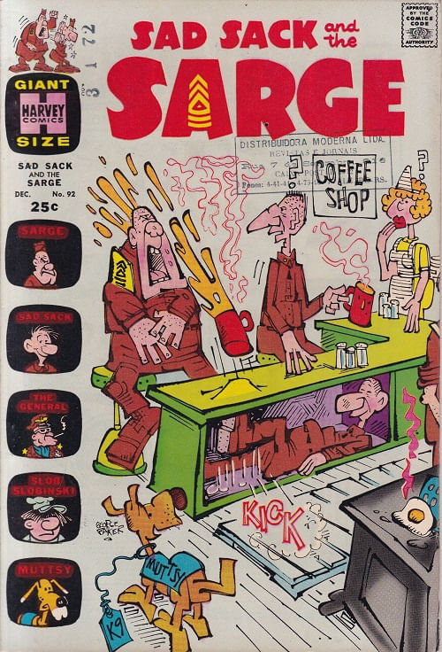 Sad Sack and the Sarge # 92 Gibi importado publicado pela Editora Harvey, 36 páginas aproximadamente, data de publicação: 12/1971, formato: 17.0 x 26.0 cm, cor: colorido, origem: Estados Unidos, idioma da publicação: Inglês, Gibi Semi-Novo Esgotado e Raro