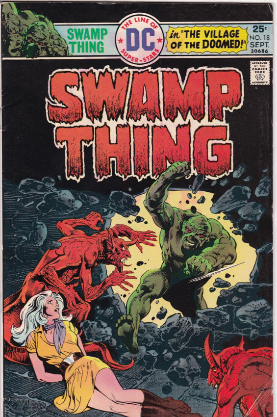 Swamp Thing - Volume 1 # 18 Gibi importado publicado pela Editora DC Comics, 36 páginas aproximadamente, data de publicação: 9/1975, formato: 17.0 x 26.0 cm, cor: colorido, origem: Estados Unidos, idioma da publicação: Inglês, Gibi Antigo Raro Usado