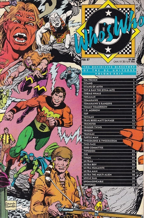 Who's Who The Definitive Directory of the DC Universe # 24 Gibi importado publicado pela Editora DC Comics, 36 páginas aproximadamente, data de publicação: 2/1987, formato: 17.0 x 26.0 cm, cor: colorido, origem: Estados Unidos, idioma da publicação: Inglês, Trata-se de um gibi usado