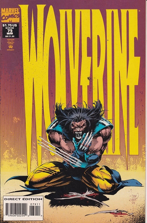 Wolverine - Volume 1 # 79 Gibi importado publicado pela Editora Marvel Comics, 36 páginas aproximadamente, data de publicação: 3/1994, formato: 17.0 x 26.0 cm, cor: colorido, origem: Estados Unidos, idioma da publicação: Inglês, Trata-se de um gibi usado